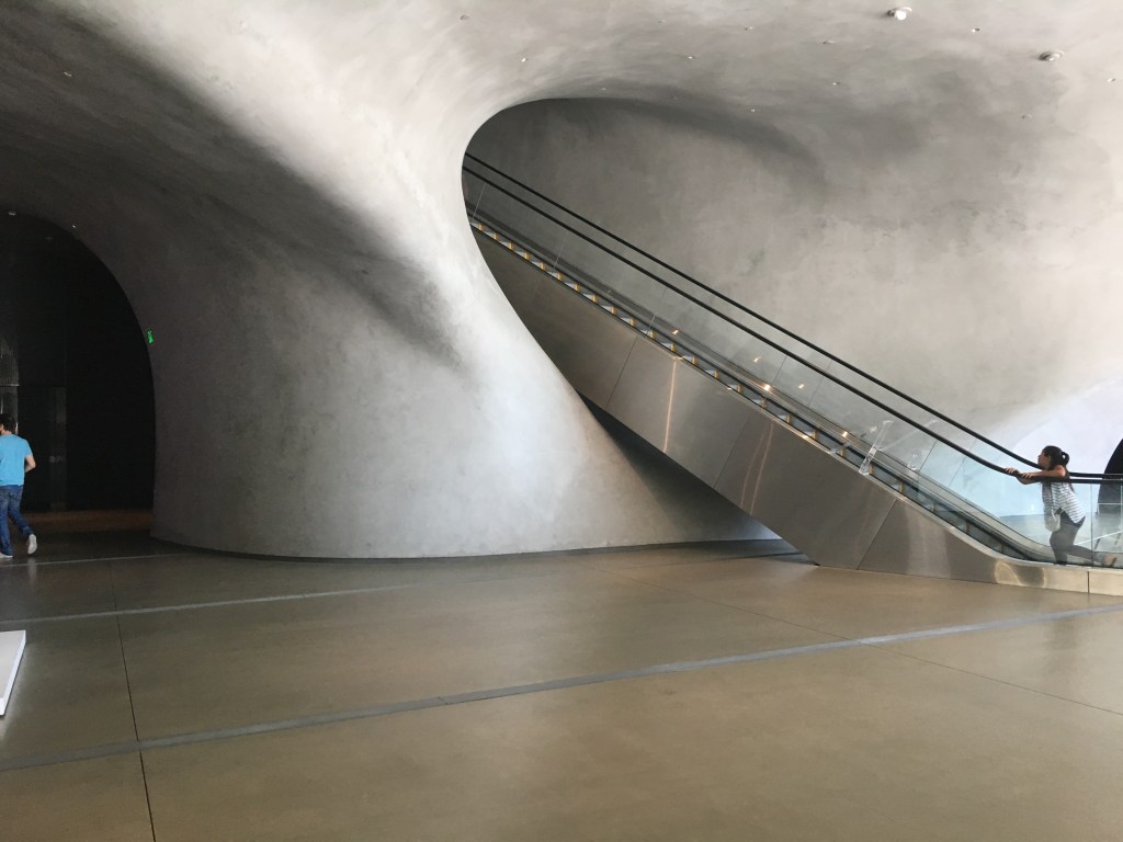On avait réservé notre entrée au Broad Museum, quelques rues plus haut. Celle-ci est gratuite mais il faut reserver sa place en avance ( le premier jour du mois precedent pour être exact, facile à faire mais mettez un rappel dans votre calendrier). Le bâtiment, dessiné par le cabinet Diller Scofidio + Renfro, est impressionnant :