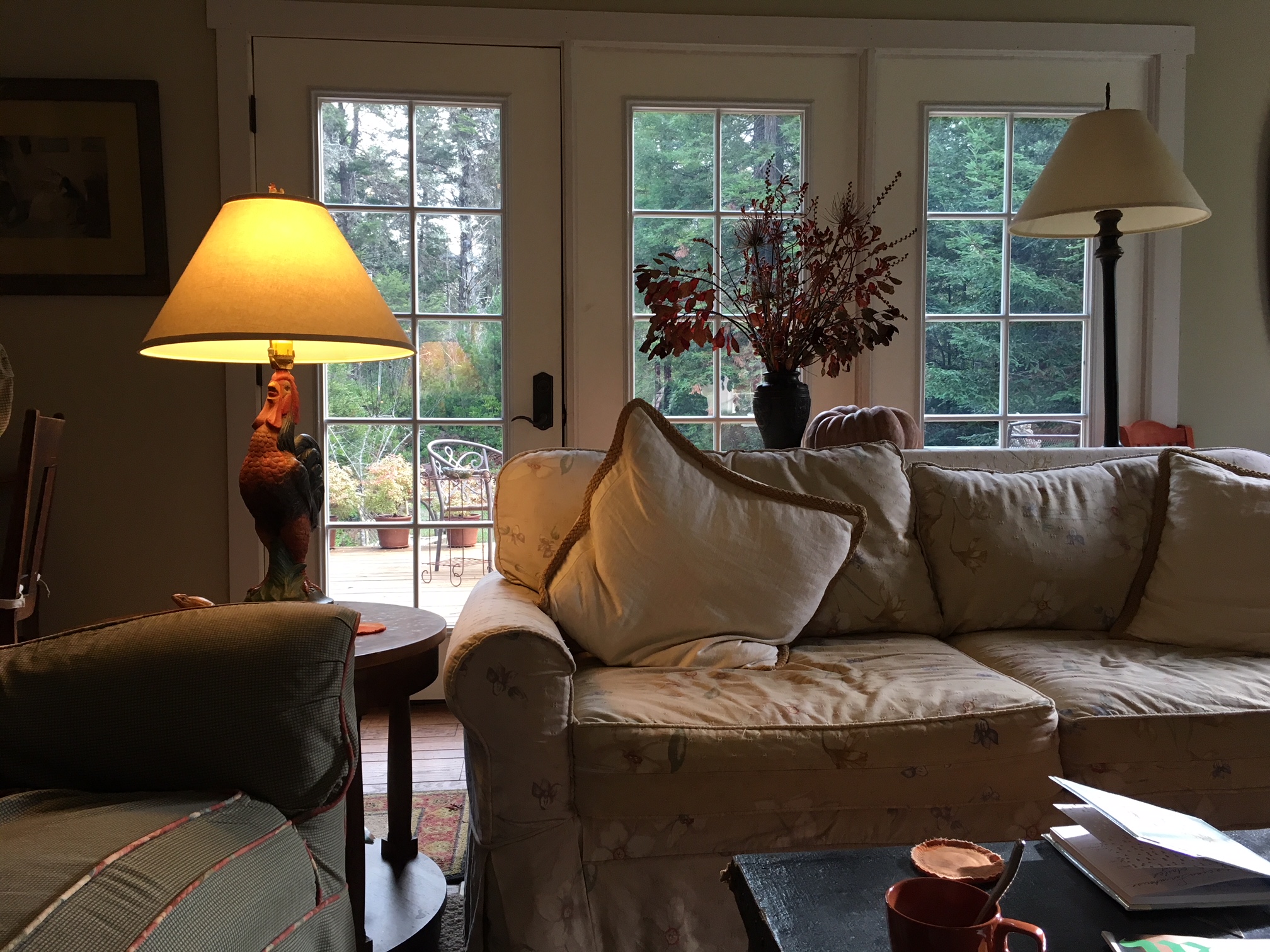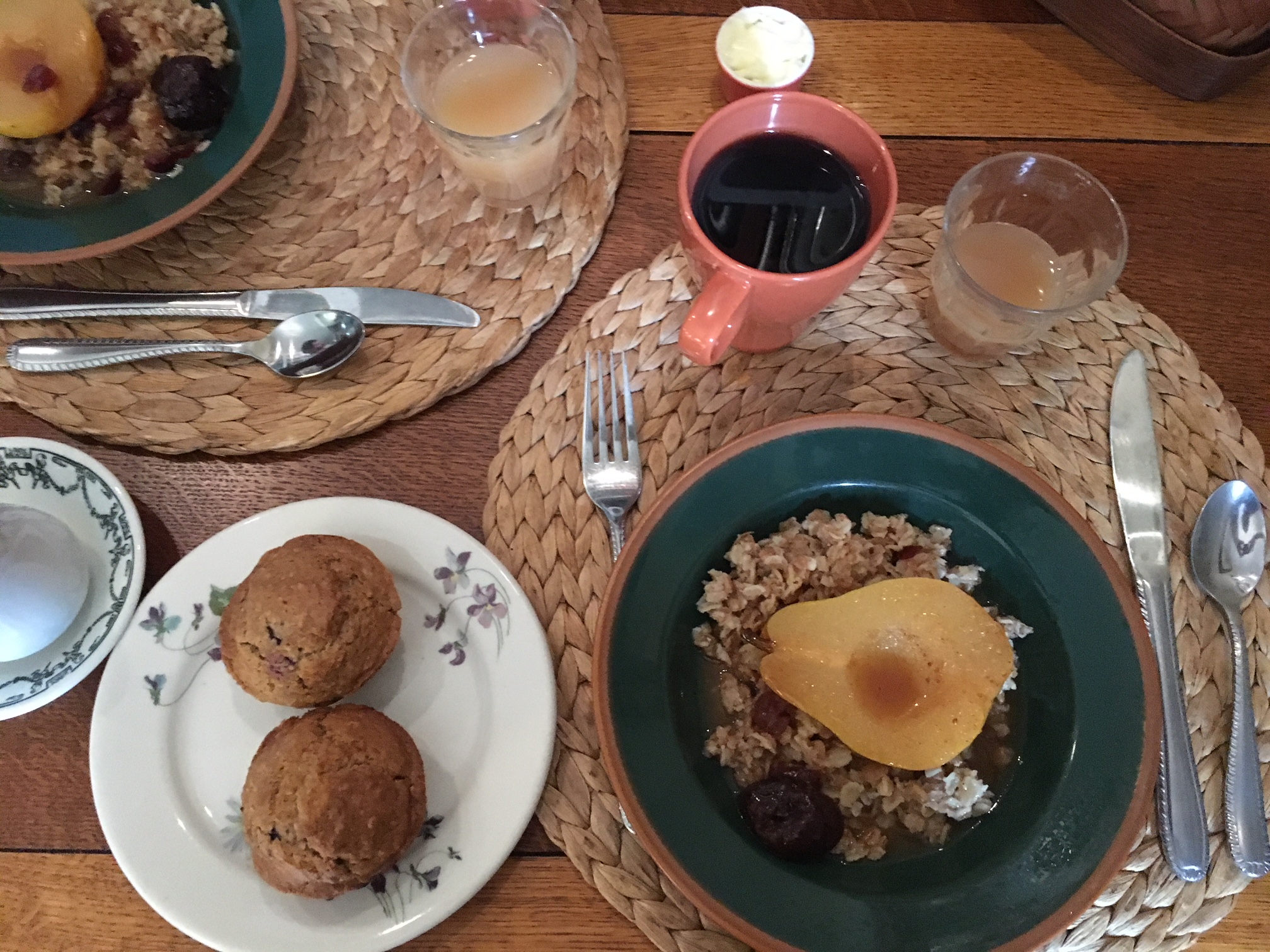 MATIN – Réveil matinal dans notre belle petite chaumière au milieu de la Redwood Forest, chez Margie, propriétaire de The Mendocino Farmhouse. Mention spéciale pour le délicieux petit-déjéuner fait maison et servi minute, prit devant le feu de cheminée du salon, meublé dans un parfait style « campagne anglaise ».